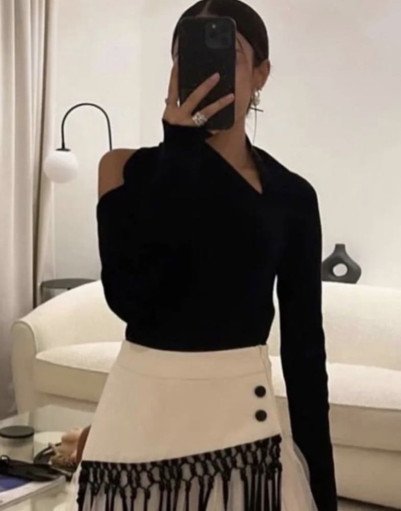 بلوزة صوف باللون الأسود بقصة مميز ة